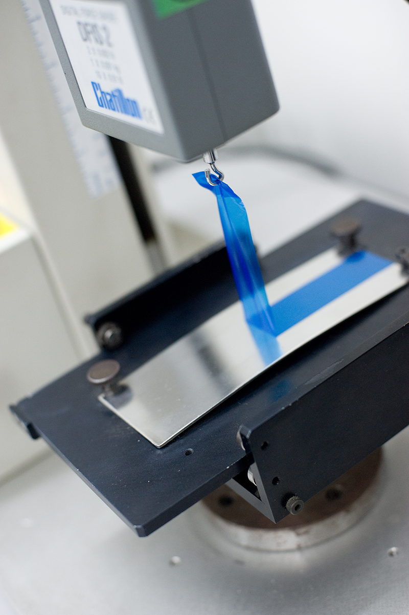 All our tapes are consistently tested for their adhesive strength. They are tested during the on-line run and after the aging process. This is to ensure quality products are being delivered to our customers.